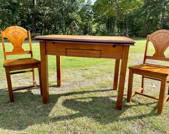 1940u2019s Art Deco Wood Grain Porcelain Enameled Kitchenette Table and Two Chairs