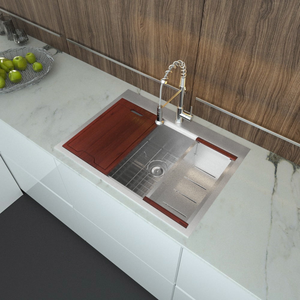 28 Inch Drop Kitchen Sink – Sarlai 28 “x 22” Kitchen Sink Stainless Steel 16 Gauge Ledge Workstation Sink Drop-in Topmount Single Bowl Single Bowl