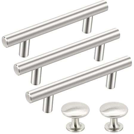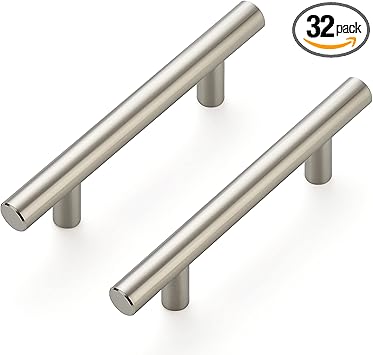 (30 Pack) Probrico 3 Inch Hole Centers Euro T Bar Cabinet Pulls Stainless Steel Kitchen Drawer Handles Satin Nickel Furniture Dresser Cabinet