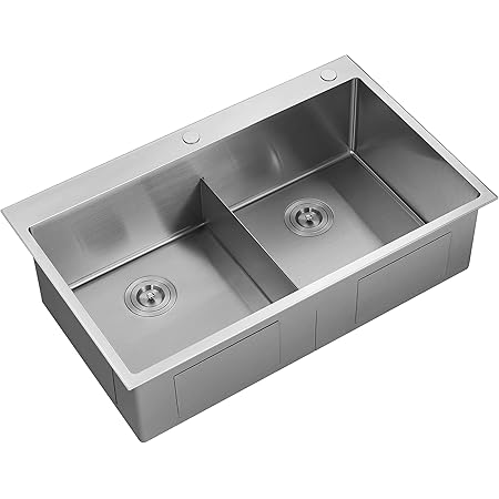 36-inch 16 Gauge Stainless Steel 50/50 Double Bowl Topmount Drop-in Zero Radius Kitchen Sink