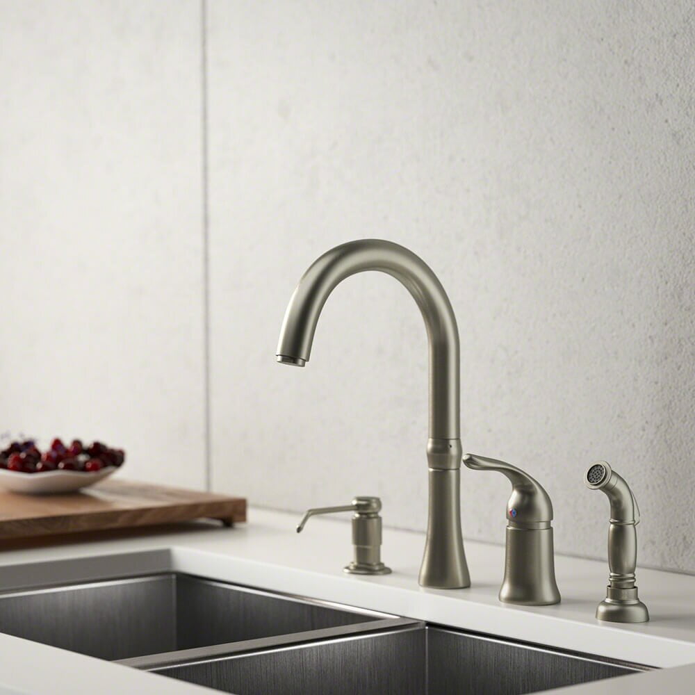 Pfister LG264YPK Ashfield 1-Handle Kitchen Faucet with Side Spray u0026 Soap Dispenser, Brushed Nickel, 1.8 gpm