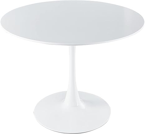 FMD 42 inch White Round Dining Kitchen Table Pedestal Base Mid-Century Modern Tulip Circle Table