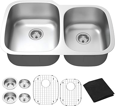 Giantex Undermount Double Bowl Kitchen Sink 60/40 Wash Sink 16 Gauge Stainless Steel Dual Sinks with Accessories 9u201d Deep (32″Lx21″Wx9″H)