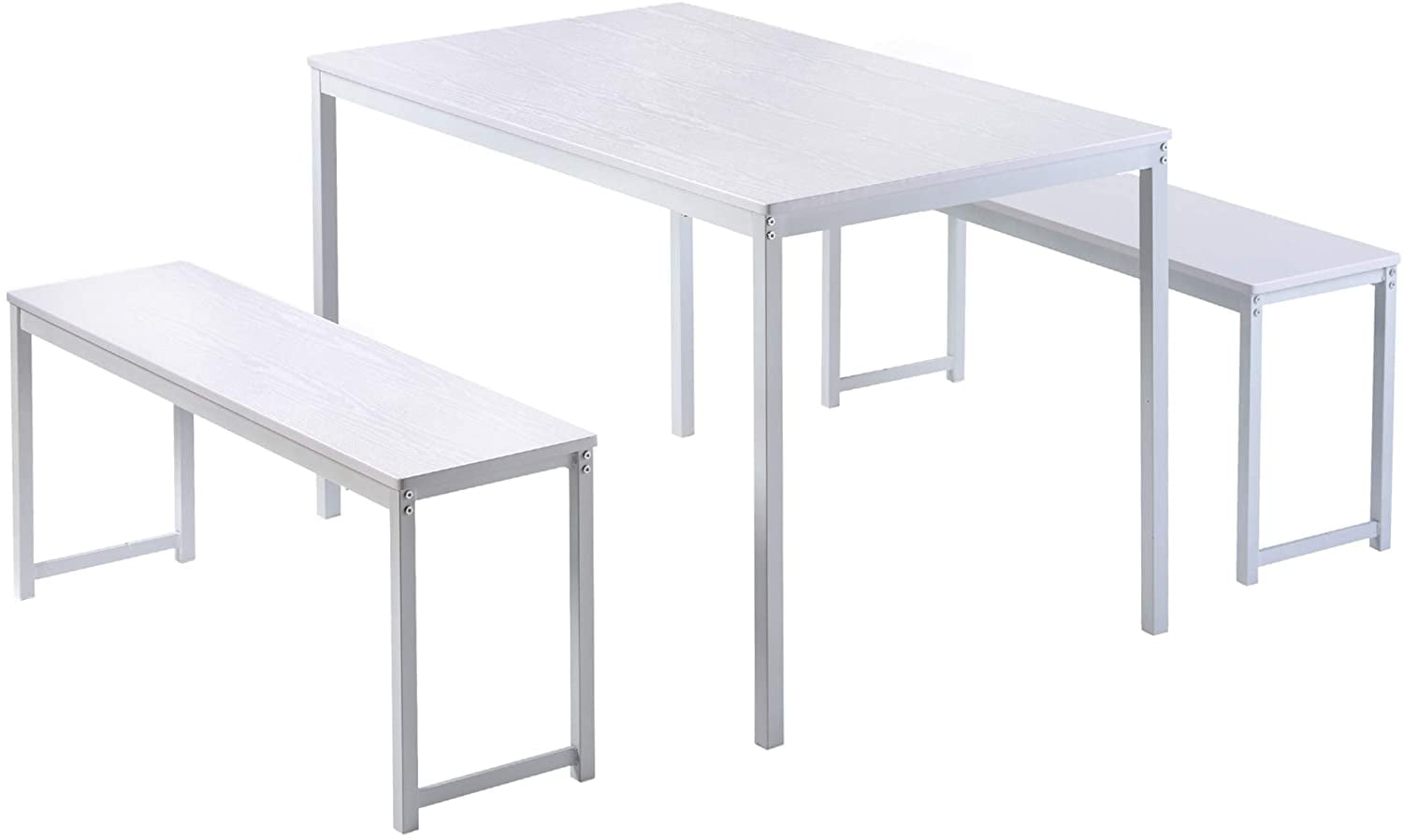 3-Piece Dining Table Set, Most Stylish Breakfast Nook Table Set W/Metal Frame+MDF Board, Kitchen Table Set with 2 Benches, Contemporary Home Furniture