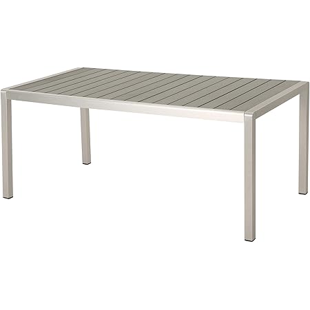 Christopher Knight Home 305353 Coral Outdoor Aluminum Dining Table with Faux Wood Top, Gray Finish