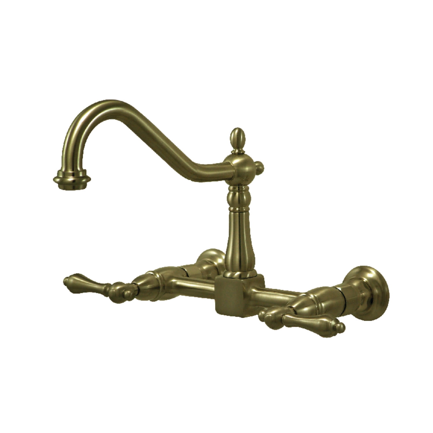 Kingston Brass KS1243AL Heritage 8 in. Wall Mount Kitchen Faucet, Antique Brass
