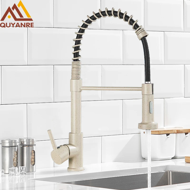 Factory Price Beige Color Brass Material Pull Out Kitchen Fuacet