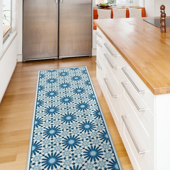 Dark Blue Runner Rug Printed on Vinyl Floor Mat. Blue Rug – Etsy