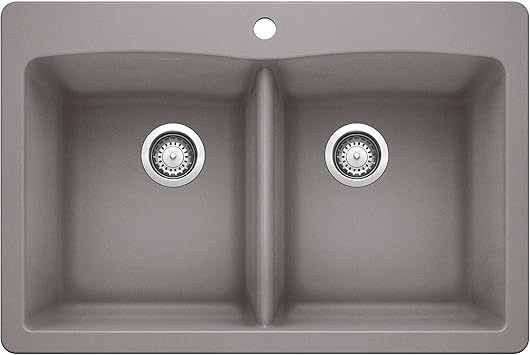 BLANCO 440220 Diamond Silgranit 50/50 Double Bowl Undermount or Drop-in Kitchen Sink, 33″ LX 22″ WX 9.5″ D, Anthracite