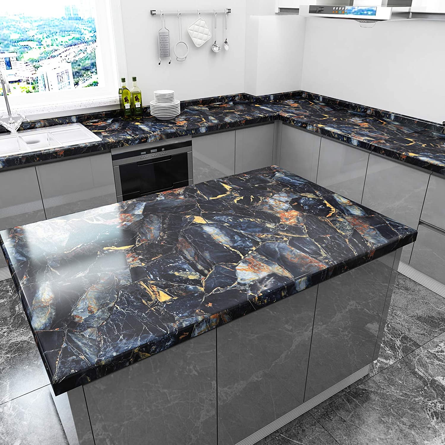 VEELIKE 15.7u0027u0027x354u0027u0027 Navy Blue Marble Contact Paper for Countertops Waterproof Wallpaper Peel and Stick Marble Countertops Self Adhesive Removable