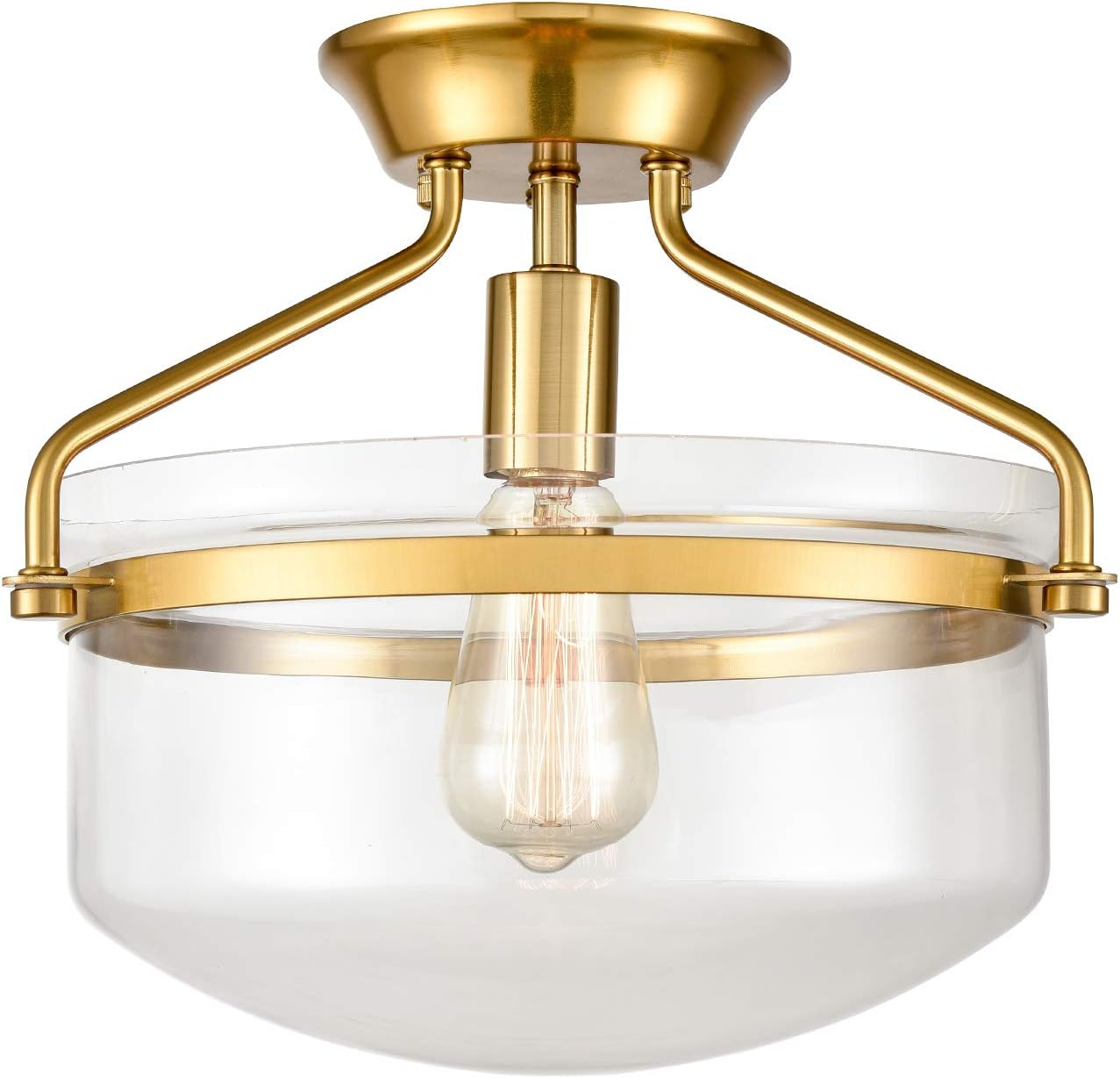 Modern Mid-Century Gold Clear Glass Ceiling Lights Brass 14″ Wide Semi Flush Mount Ceiling Lighting Fixture for Bedroom Kitchen Hallway Bathroom