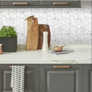 2.5″ Carrara Hexagon Peel and Stick Tile Kitchen Backsplash