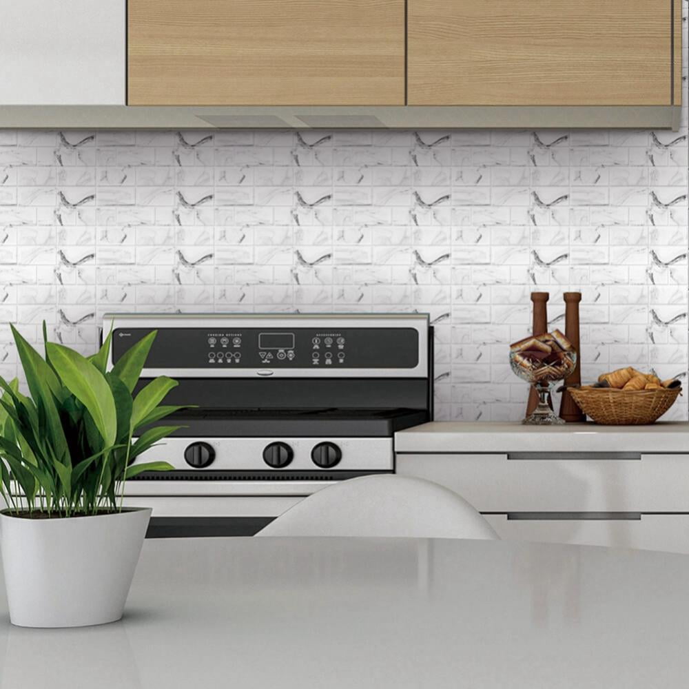 Promorion Clearance 3D Tile Sticker Removable Wallpaper Tile White, 3D Self Adhesive Wall Tiles Bathroom Wall Tiles for Kitchen Backsplash White, PVC