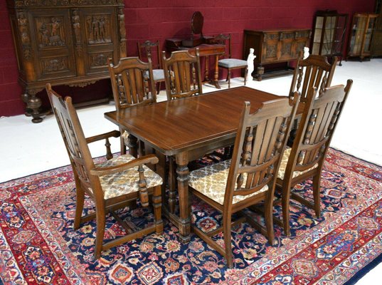 Colonial Style Extending Dining Table with Six High Back Chairs, Set of 7