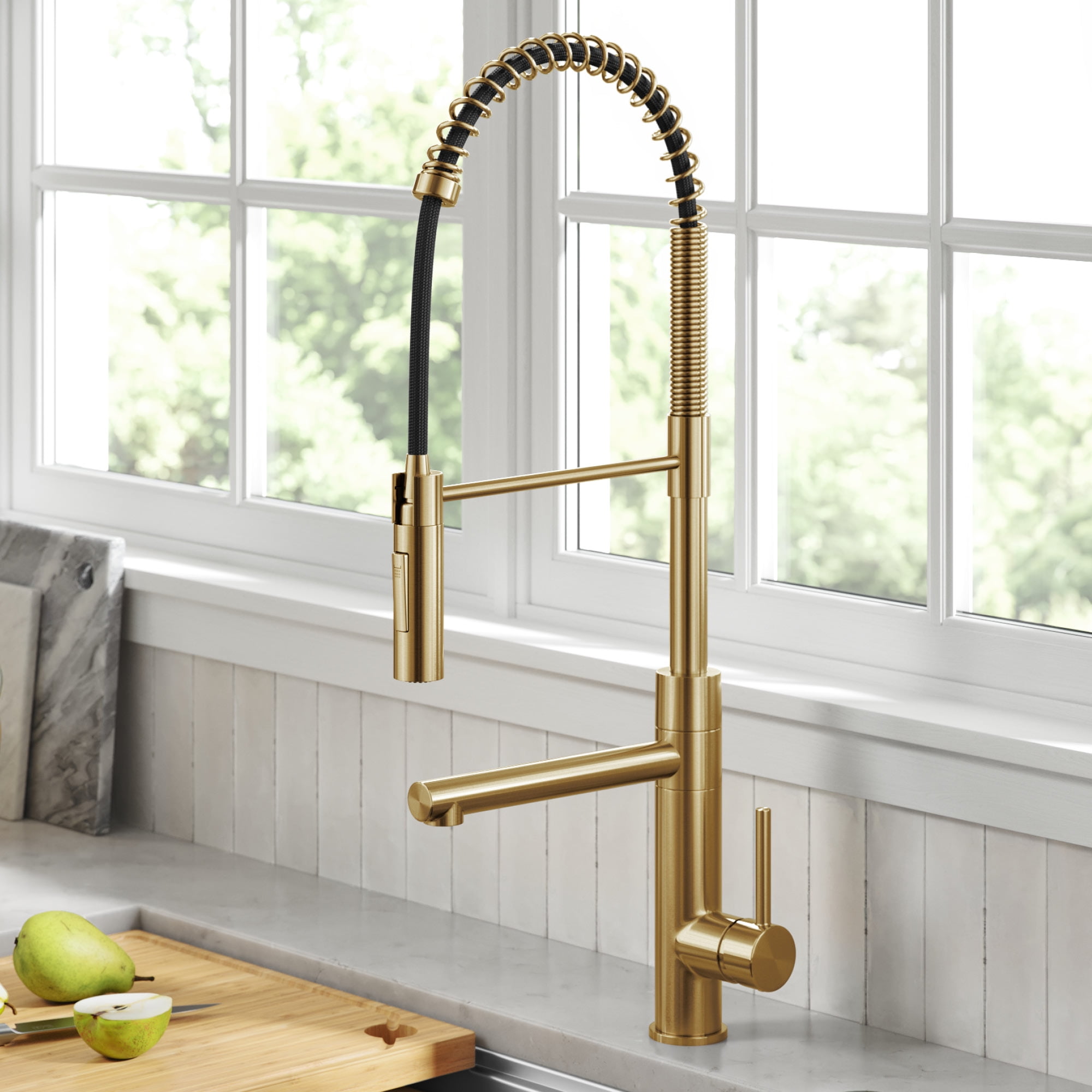 Kraus KRAUS Bolden Commercial Style Pull-Down Kitchen Faucet and Purita Water Filter Faucet Combo in Brushed Gold