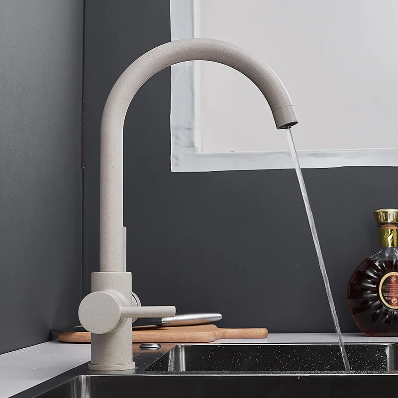 Brass Cream-coloured 3 Way Kitchen Sink Faucet Mixer Two Handle Beige Kitchen Healthy Drinking Water Tap W3050