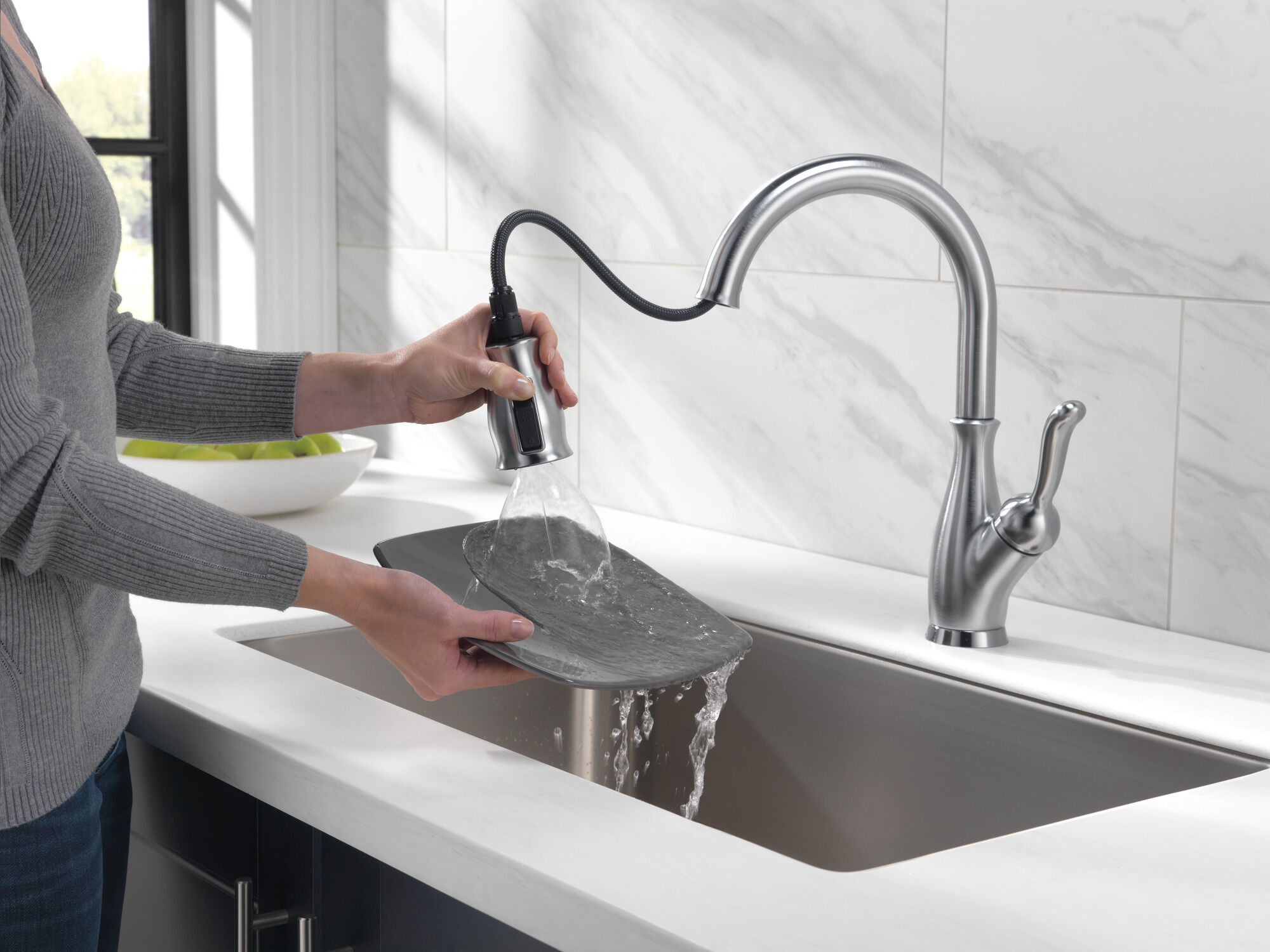 Single Handle Pull-Down Kitchen Faucet in Arctic Stainless 978-AR