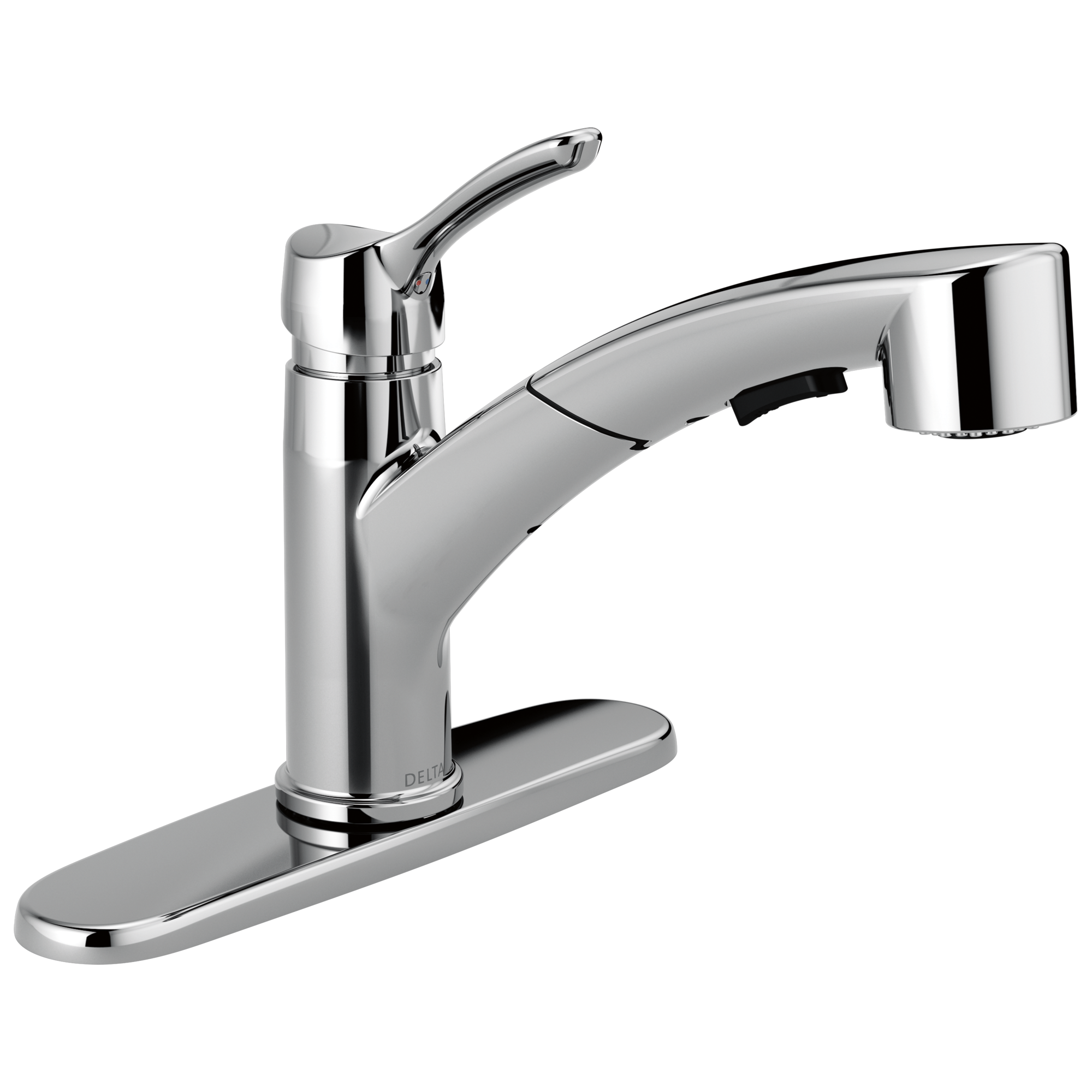 Delta Signature Chrome Single Handle Pull-out Kitchen Faucet with Sprayer Function (Deck Plate Included)