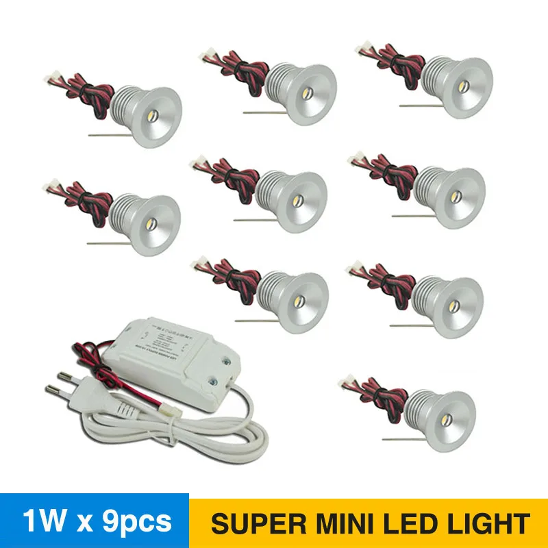1W*9pcs/set Dimmable LED Downlights with LED Power Supply Home Bedroom Kitchen Cabinet