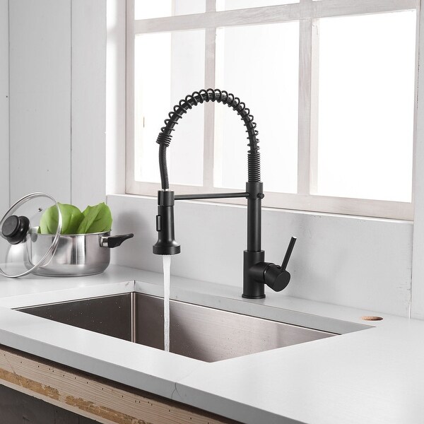 Finite Single-Hole Kitchen Faucet with Swivel Spout and Pull-Down