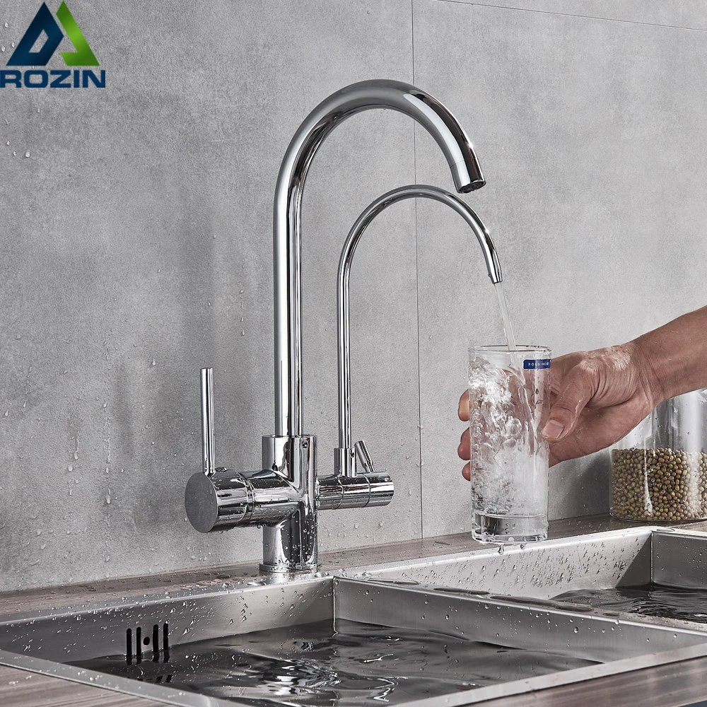 Black Purify Kitchen Mixer Tap Deck Mounted Dual Handle Purification Kitchen Sink Faucet 2 Swivel Spout Water Tap for Kitchen