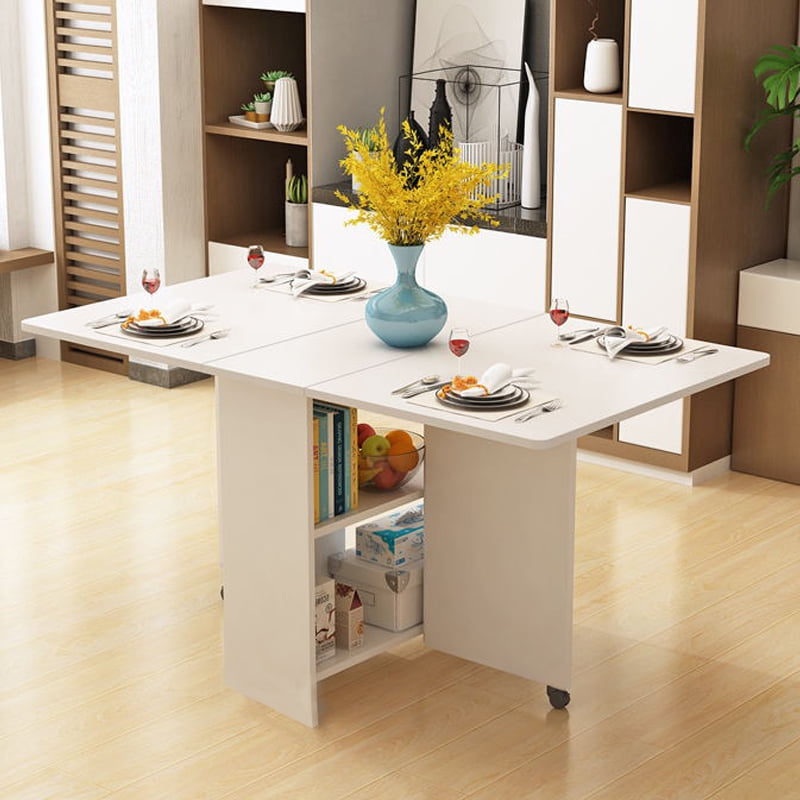 Folding Dining Table with 2 Layers Storage, 3 in 1 Movable Folding Kitchen Table for Dining Room, Table for Small Spaces Home Furniture