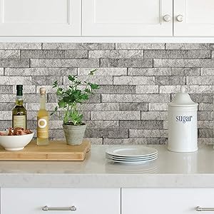Amazon.com: Brewster BHF3049 Stone Peel u0026 Stick Backsplash, Grey