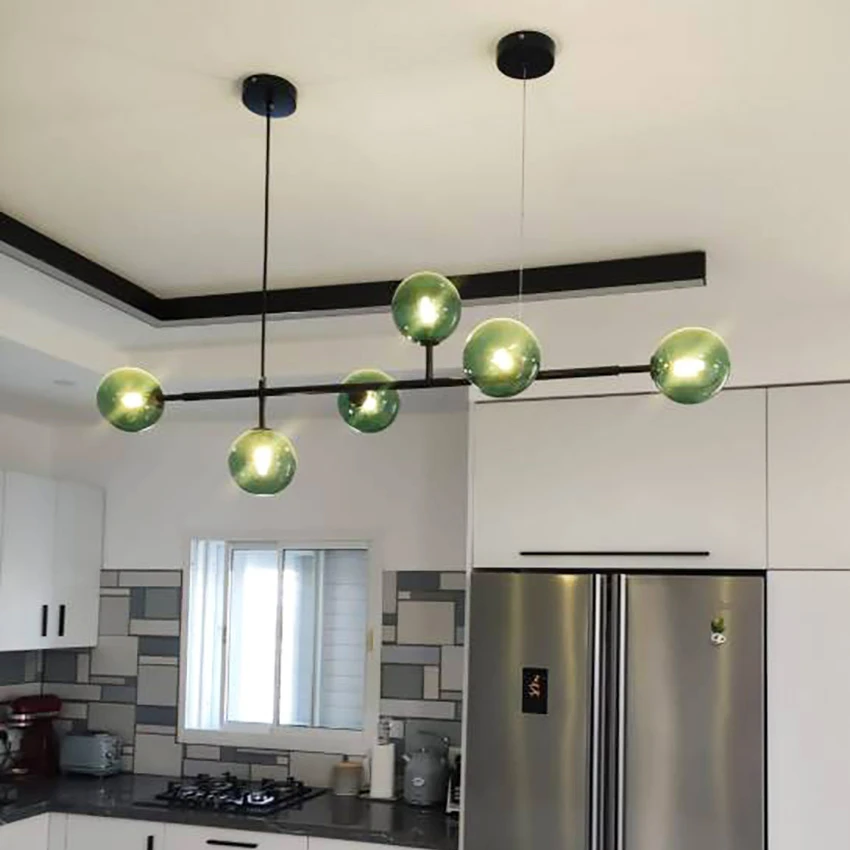 Nordic dining room pendant light modern 6 light black metal green glass hanging lamp restaurant bar kitchen suspension luminaire