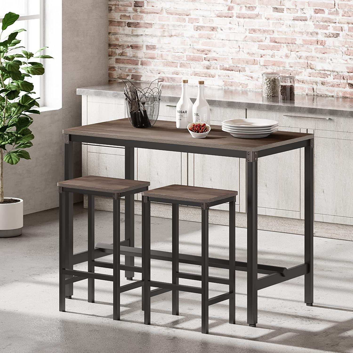 Pub Table Set for 2 High Top Bar Table Set for Small Space 3 Pieces Dining Set with 2 Faux Leather Stools Home Kitchen Breakfast Table