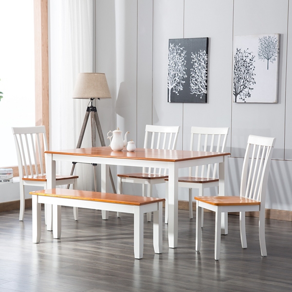 White and Honey Oak Wooden 6-pc. Dining Set