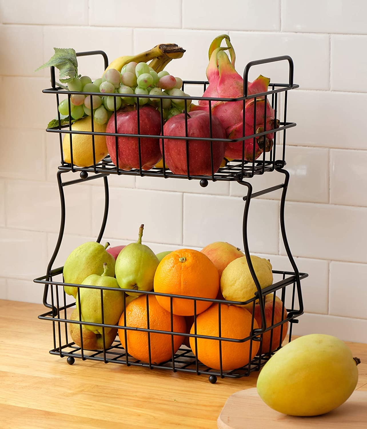 Amazon.com: 2 Tier Fruit Storage Basket Countertop for Kitchen