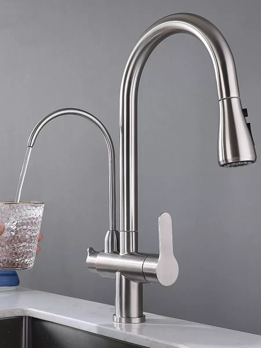 Kraus KFF-1610SFS Bolden 2-in-1 Commercial Style Pull-Down Single Handle Filter Kitchen Faucet for Reverse Osmosis or Water Filtration System, Spot