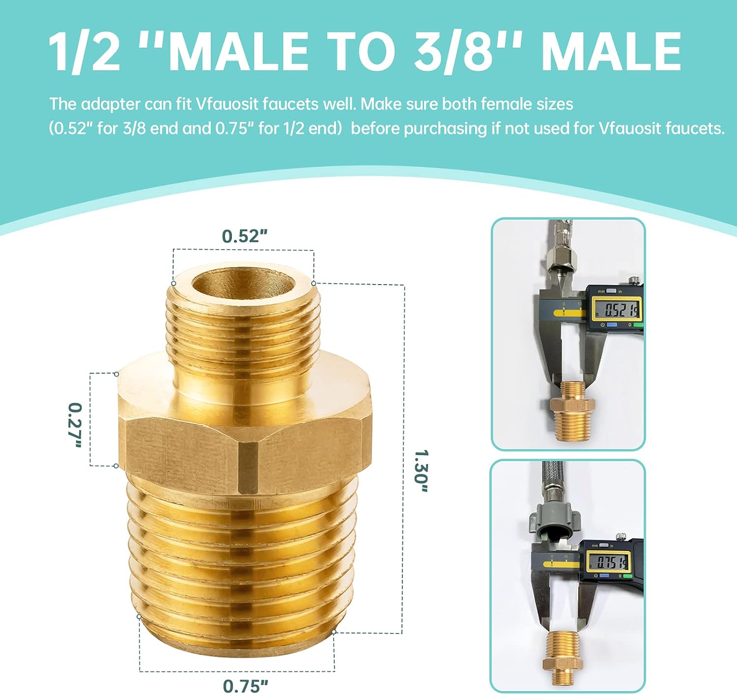 1/2 to 3/8 Reducer, Vfauosit 3/8 to 1/2 RV Faucet Adapter Brass