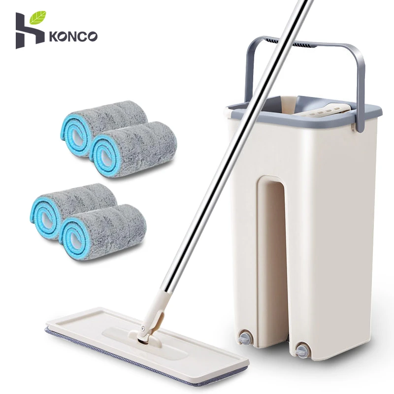 Konco Magic Cleaning Mops with Bucket Floors Squeeze Flat Mop with Water Home Kitchen Floor Cleaner House Cleaning Tools