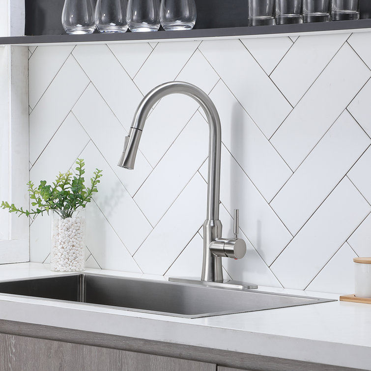 Pull Down Single Handle Kitchen Faucet with Deck Plate