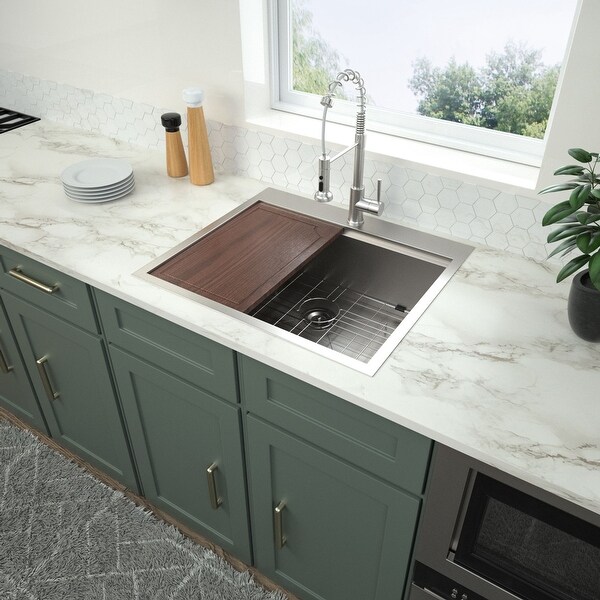 Rivet 16-Gauge Stainless Steel 30 in. Single Bowl Drop-In Workstation Kitchen Sink with Work Flow Ledge and Accessories