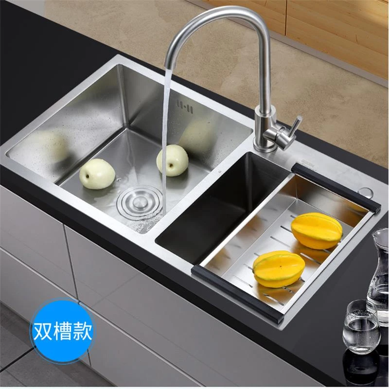 Handmade Stainless Steel Kitchen Sink Double Bowls with Drainer