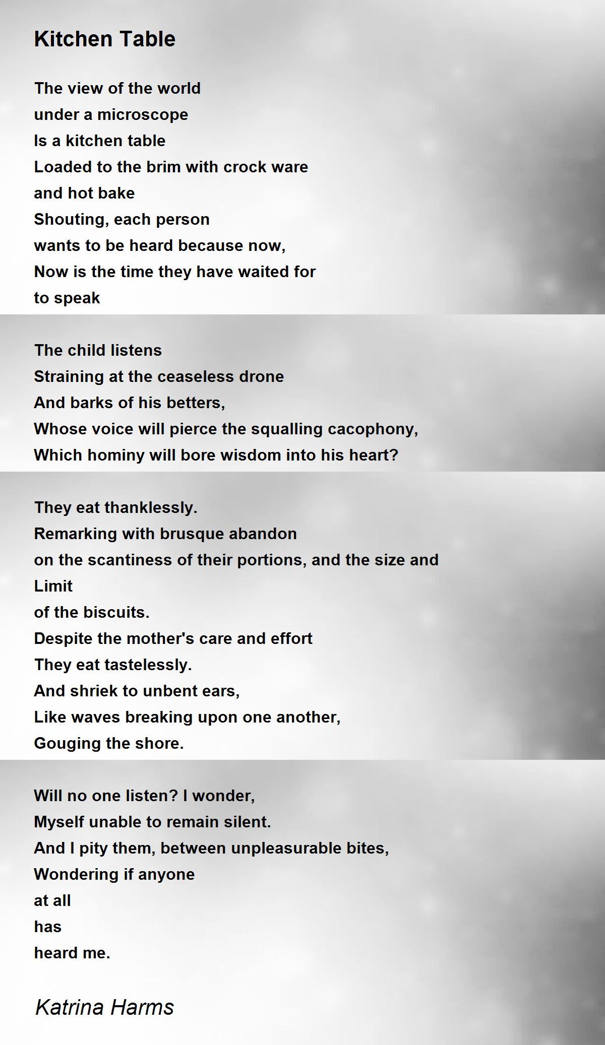 Kitchen Table Poem Kitchen table, Fancy, Open wings