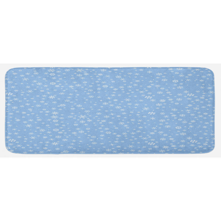 Little Snowflakes Falling From The Sky December New Year`S Eve Blizzard Blue White Kitchen Mat