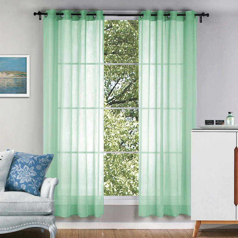 1pcs Light Green Polyester Tulle Curtain for Kitchen Living Room Voile Sheer Translucent Window Screen Curtains Home Decoration