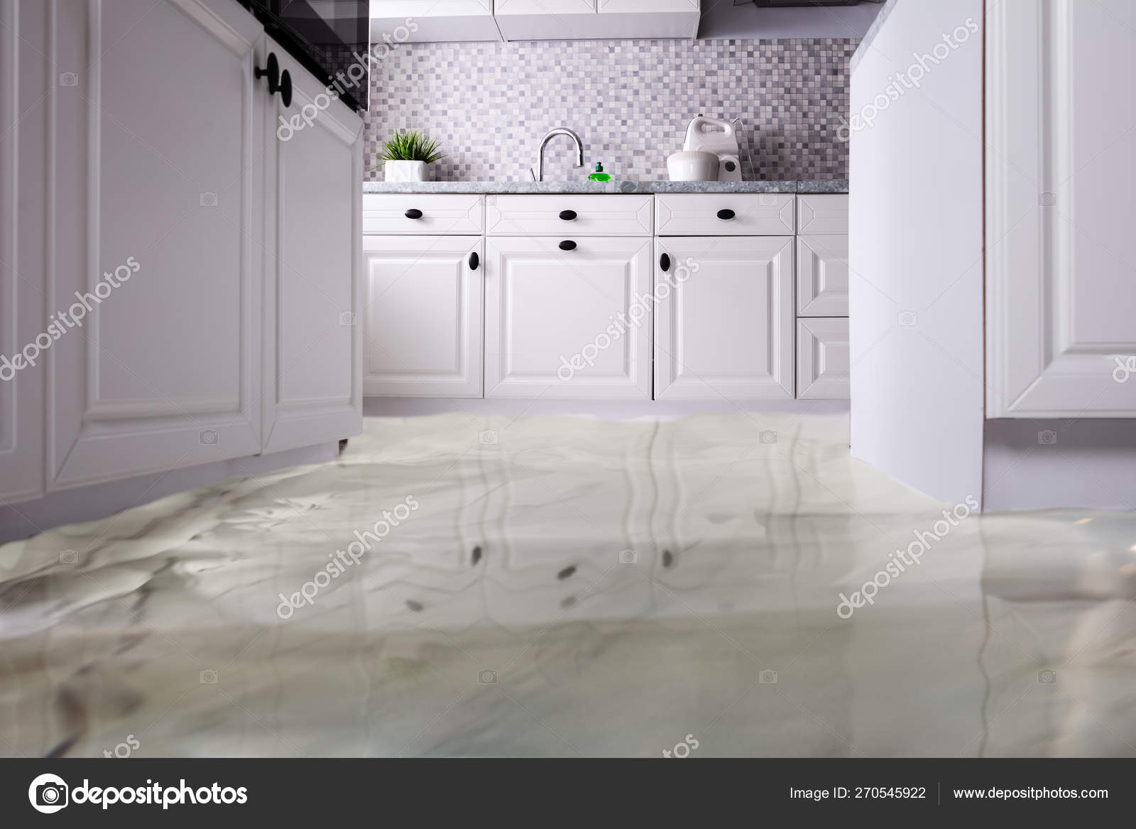 Close Flooded Floor Kitchen Water Leak Stock Photo by ©AndreyPopov