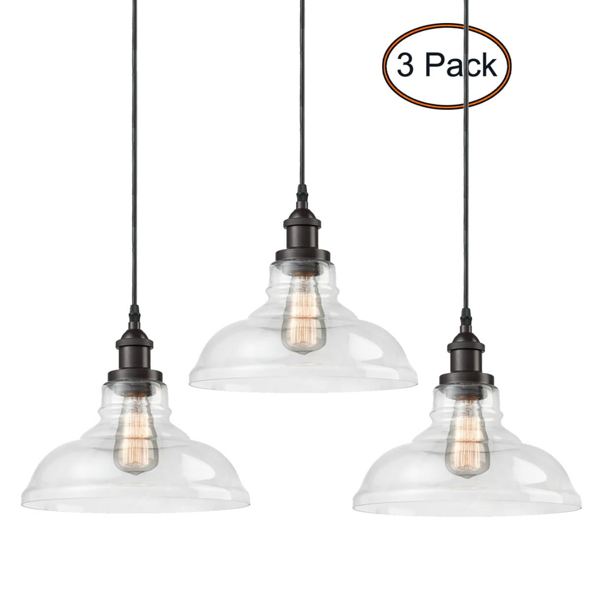 Industrial Glass Pendant Lighting Oil Rubbed Bronze Finish 3 Pack