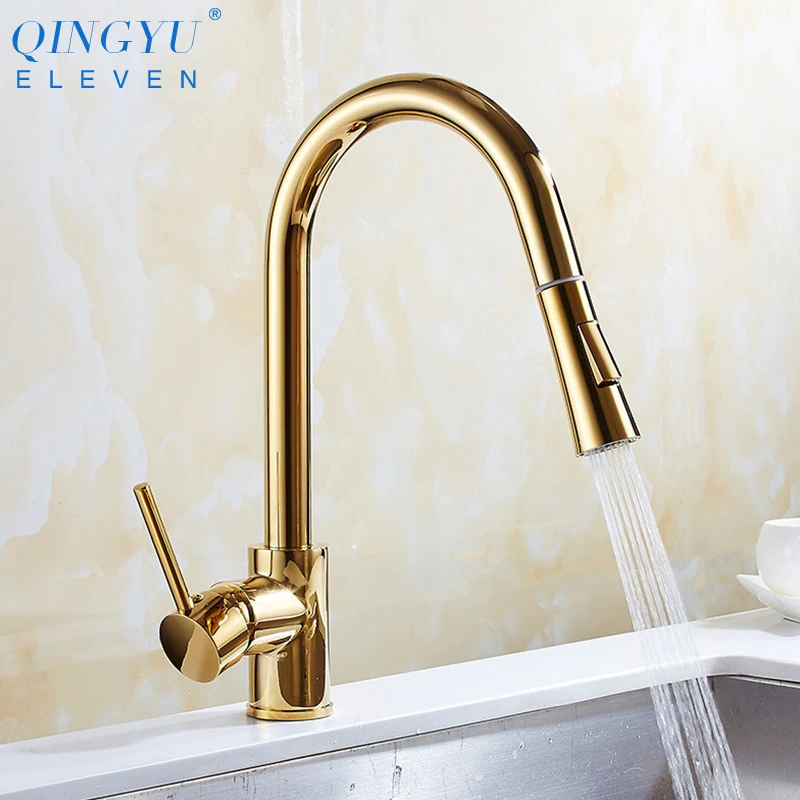 Kitchen Pull Out Faucets Gold Polished Brass Kitchen Sink Hot And Cold Mixer Single Handle Tap 360 Degree Kitchen Faucets