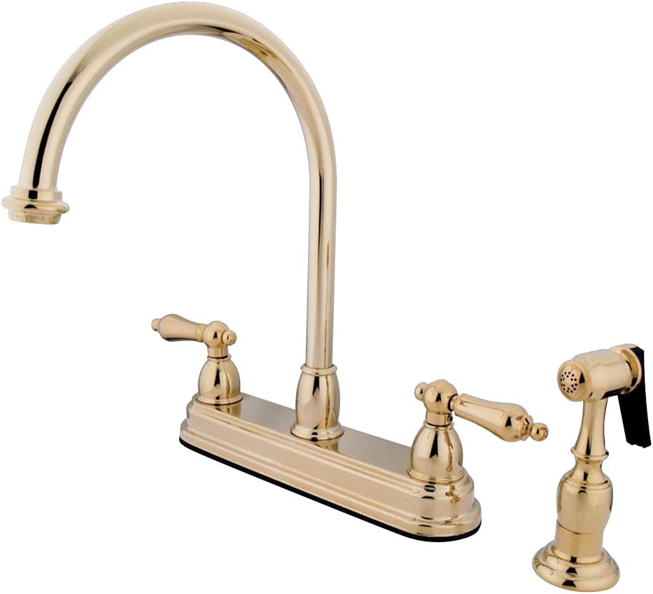 Kingston Brass KS2792KXBS Governor Deck Mount Kitchen Faucet with Brass Sprayer, 8-1/4-Inch, Polished Brass