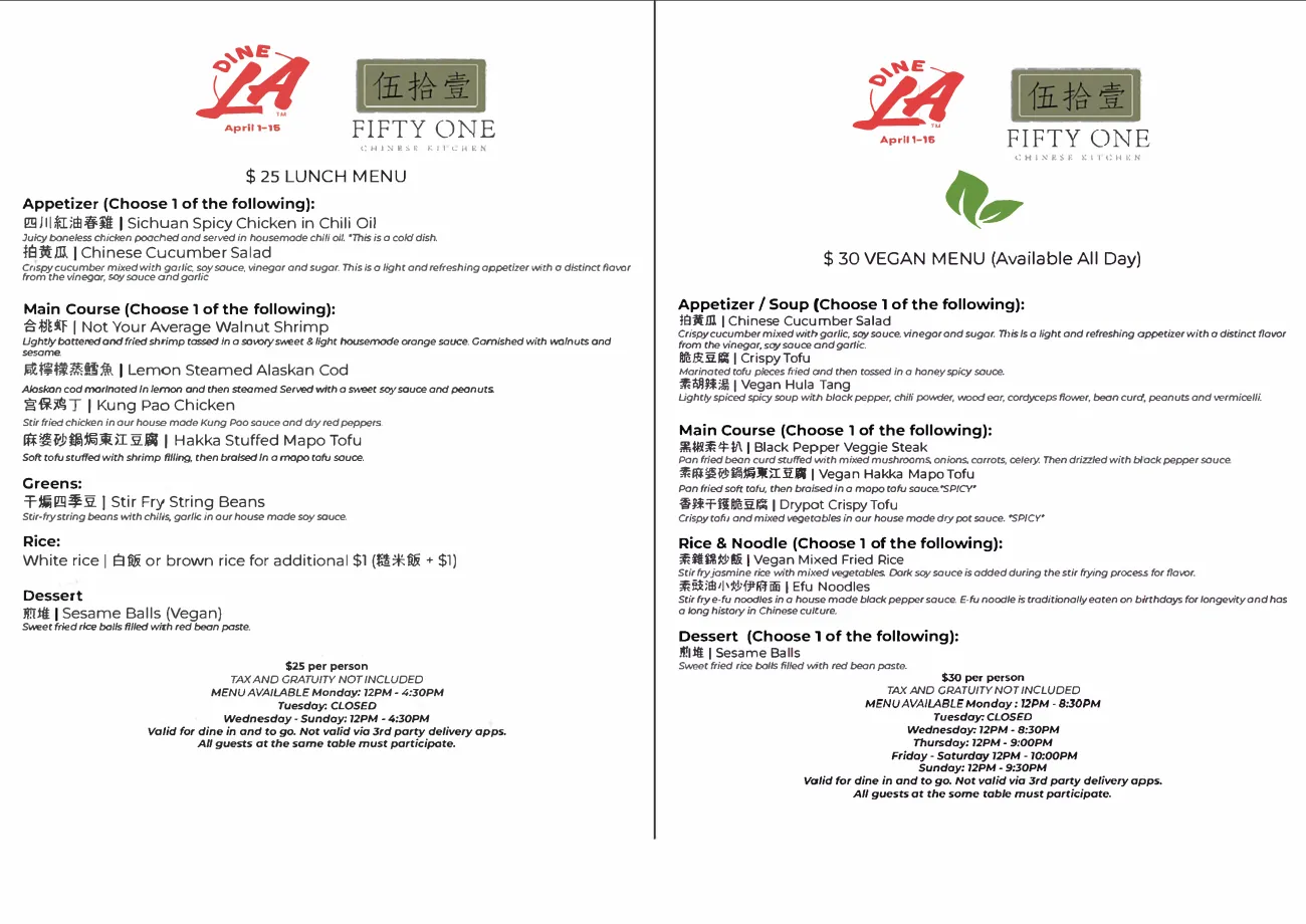 Fifty One Chinese Kitchen Dine LA menu Discover Los Angeles