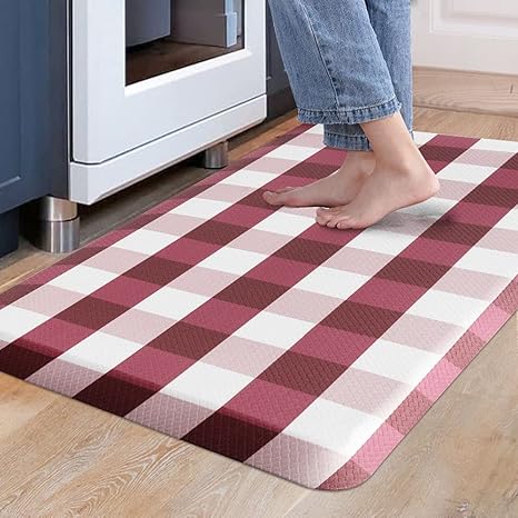 Carvapet Buffalo Plaid Kitchen Mat Cushioned Anti Fatigue Comfort Floor Mat Waterproof Non-Slip Kitchen Foam Rug Ergonomic Standing Mat for Home