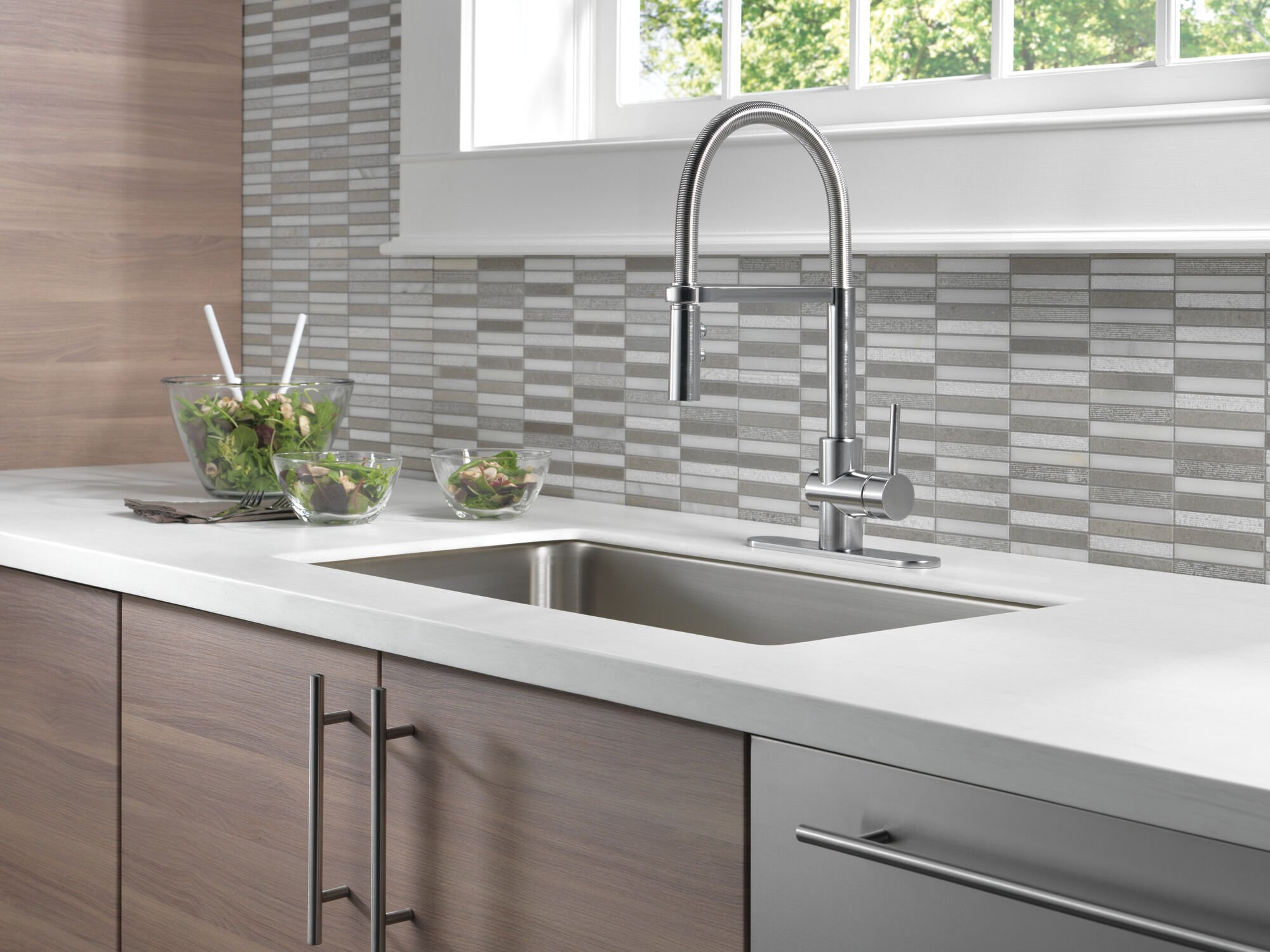 A design of a pull-down kitchen faucet with a very industrial look, the professional kitchen faucet is becoming extremely popular. Another benefit of getting the combed nickel kitchen faucets is they are really durable so you not need to worry about needing to change the faucets frequently.