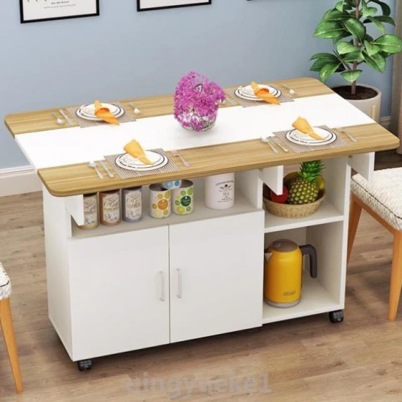 Free shipping Small apartment folding dining table and chair combination multi-layer mobile storage cabinet dining table