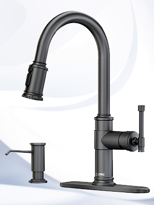 Single Handle Pull-Down Kitchen Faucet with Soap Dispenser and