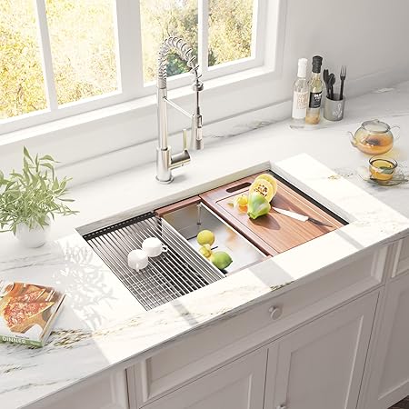 ALWEN HausinLuck 30″ Stainless Steel Workstation Kitchen Sink, Undermount, Brushed